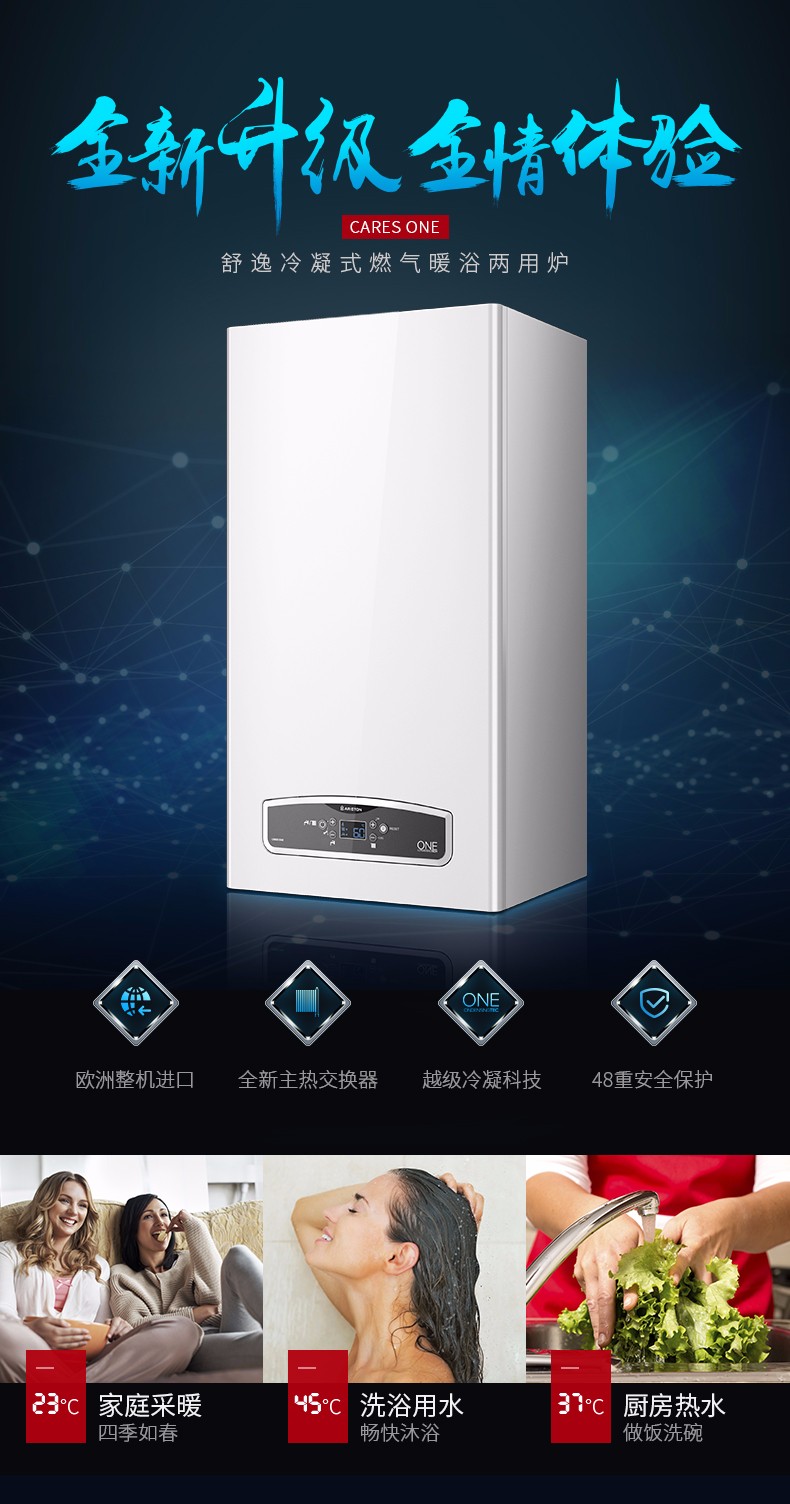 革新的ONE 系列冷凝式燃?xì)獠膳療崴疇t,出色性能,為每一個(gè)中國家庭提供高效專業(yè)的供暖和熱水解決方案。
